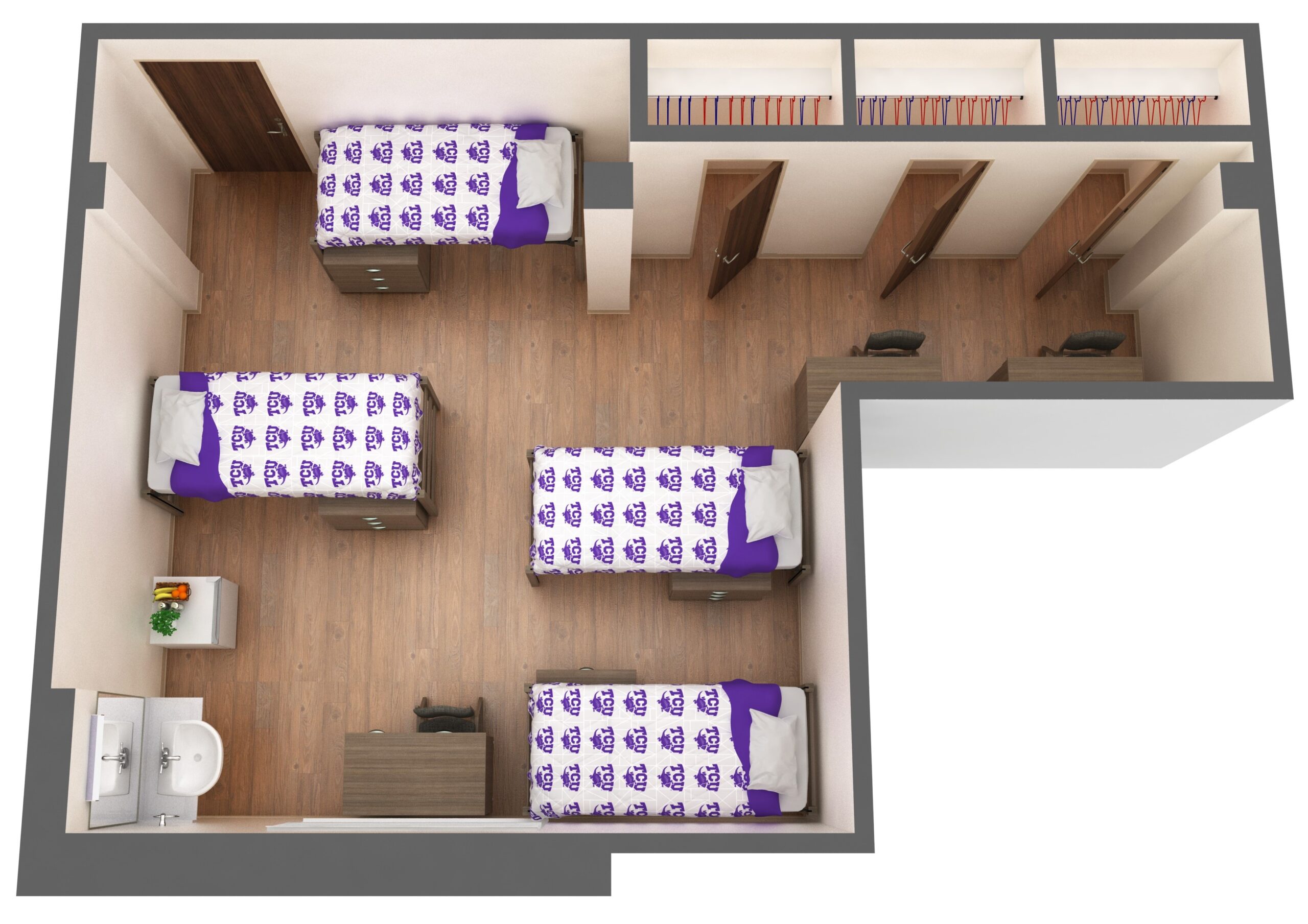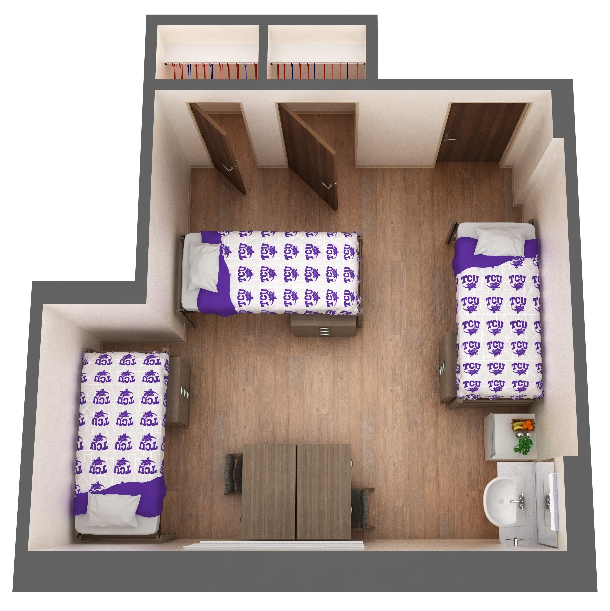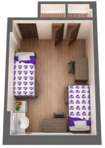 | Room Type | Double | Triple | Lounge | Triple with Shared Amenities | Quad with Shared Amenities |